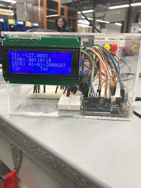The circuit was programmed in Arduino. There are two main parts of the code: 1) modifying open source code to read data from multiple temperature sensors, and 2) displaying the temperatures, time, and date on an LCD screen and saving that data to an SD card. The circuit includes: